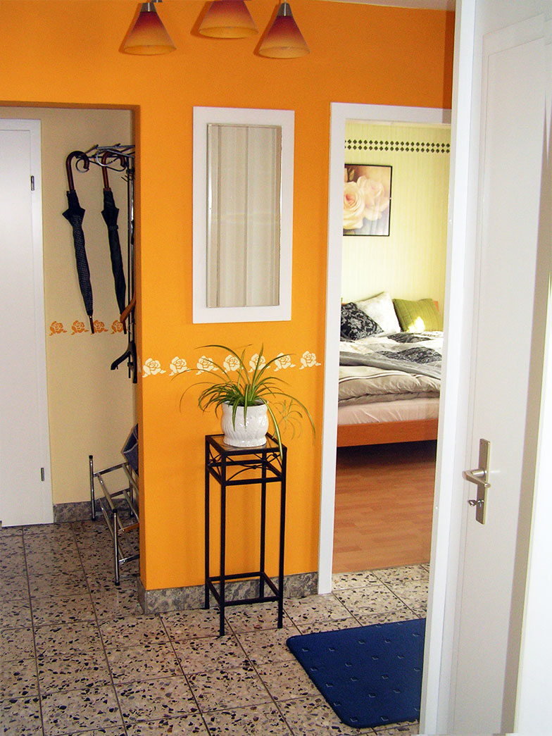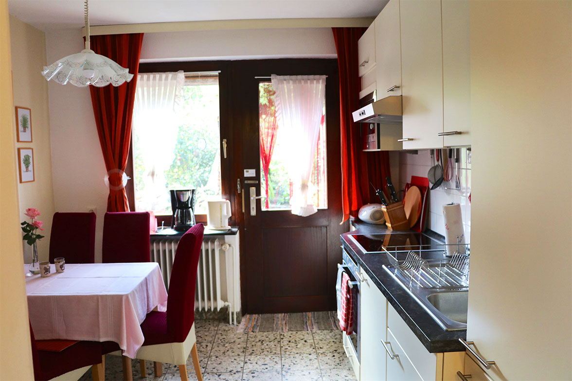 Im mittleren Bild haben Sie einen Überblick über die 80m2 große Wohnung im Erdgeschoss, die mit bis zu 5 Personen belegbar ist. Das Wohnzimmer ist mit einer Sofalandschaft, einer separaten Essecke, Fernseher (Sat), CD-Player und Radio großzügig ausgestattet. Außerdem gibt es dort ein zusätzlich ausklappbares Wandbett und jedemenge Spiele und Bücher für groß und klein. Die moderne, gut ausgestattete Einbauküche bietet ein Ceranfeld mit vier Platten, einen Backofen, Grill, Mikrowelle sowie einen |